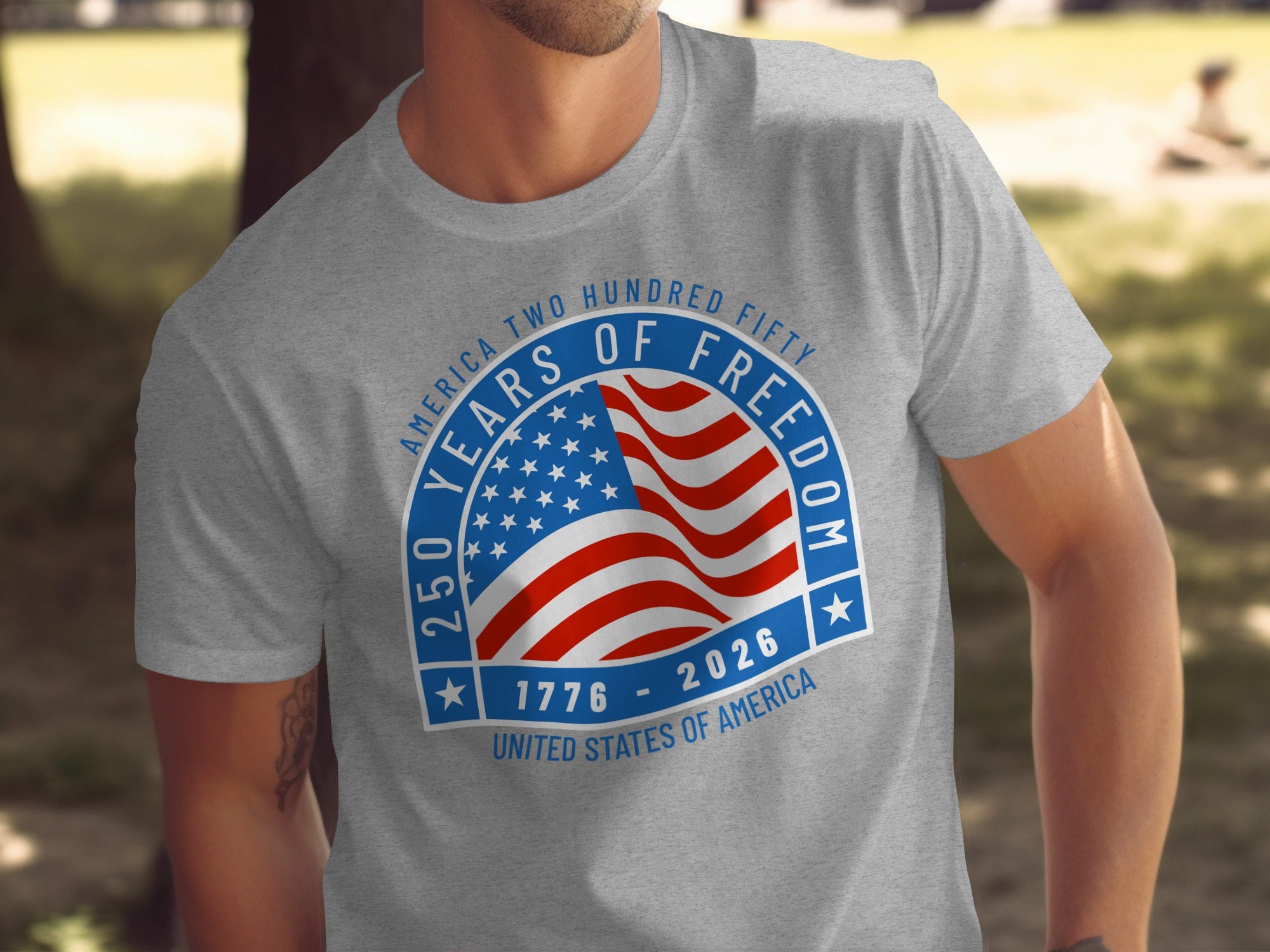 Show your American pride with this unique T-Shirt. Featuring a patriotic design with 250 Years of Freedom perfect for celebrating American heritage and freedom.