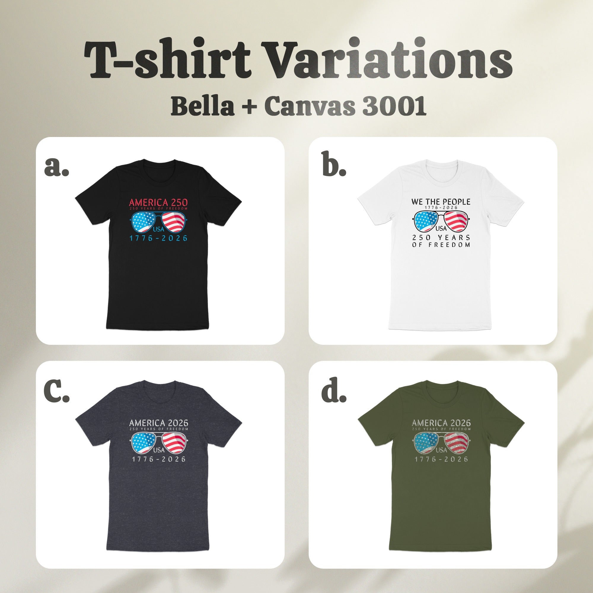 Celebrate freedom with this stylish patriotic graphic T-Shirt! It features America 250 USA design with sunglasses graphic. Shop now for comfortable and trendy apparel.