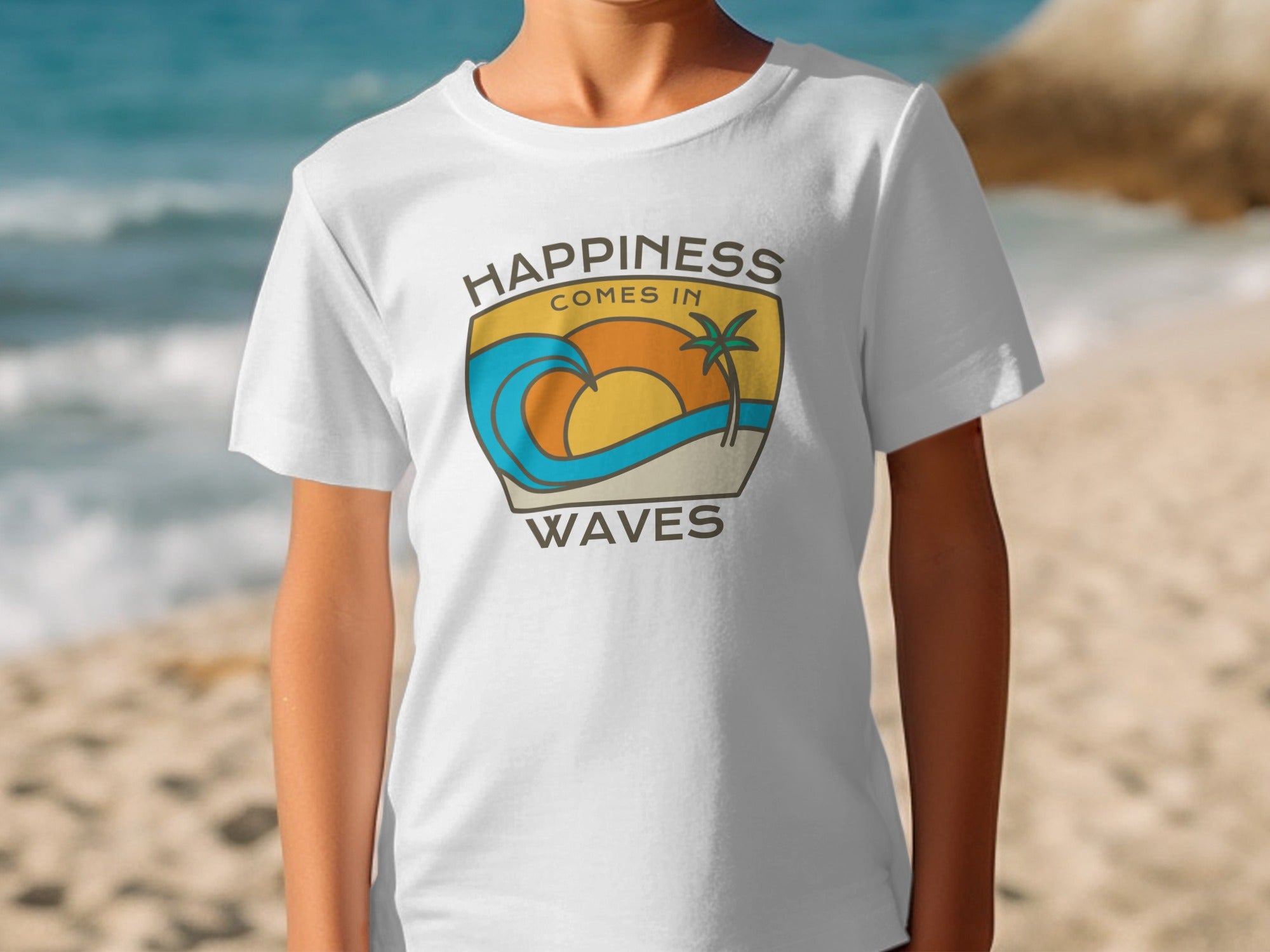 Happiness Comes In Waves Summer Vibes Graphic T-Shirt